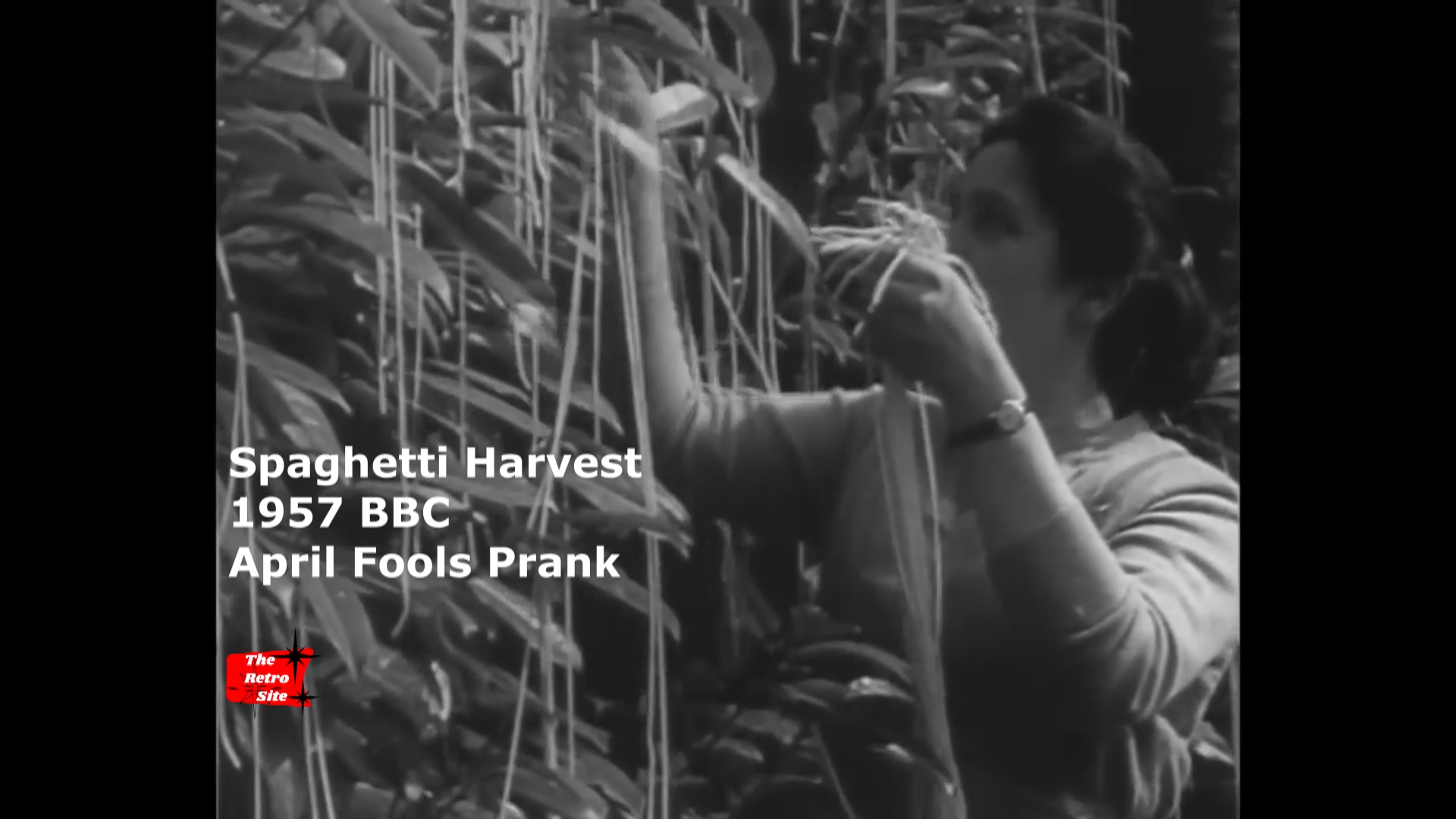 In 1957, spaghetti was not a common food in Britain. It was mainly available in cans pre-made, so at the time not alot of people knew how pasta was made. The BBC made a three minute report on their show Panorama about a Swiss family harvesting their spaghetti from trees.